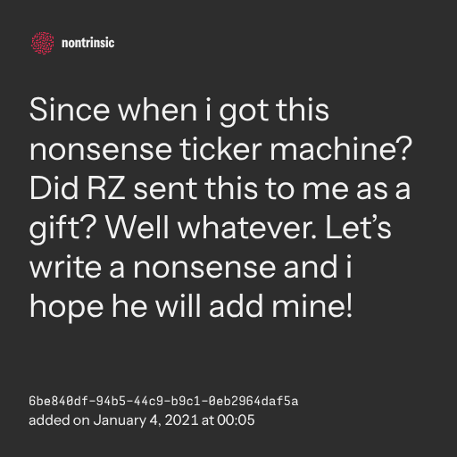 поделитьсяSince when i got this nonsense ticker machine? Did RZ sent this to me as a gift? Well whatever. Let’s write a nonsense and i hope he will add mine!