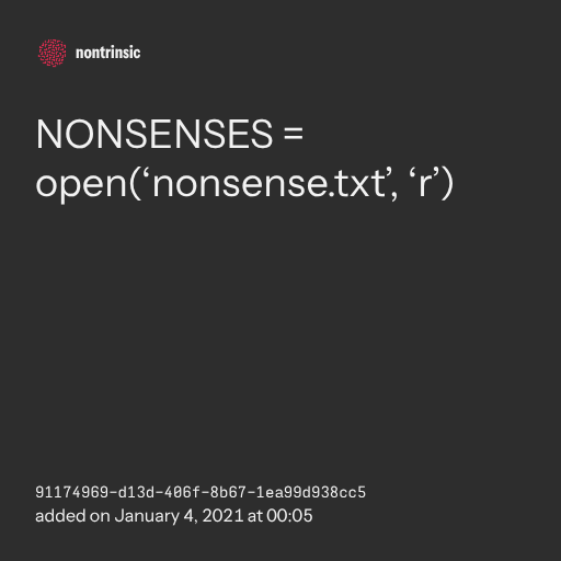 поделитьсяNONSENSES = open(‘nonsense.txt’, ‘r’)
