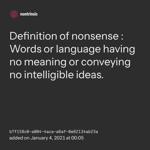 поделитьсяDefinition of nonsense : Words or language having no meaning or conveying no intelligible ideas.