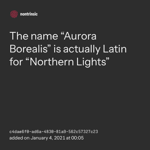 поделитьсяThe name “Aurora Borealis” is actually Latin for “Northern Lights”