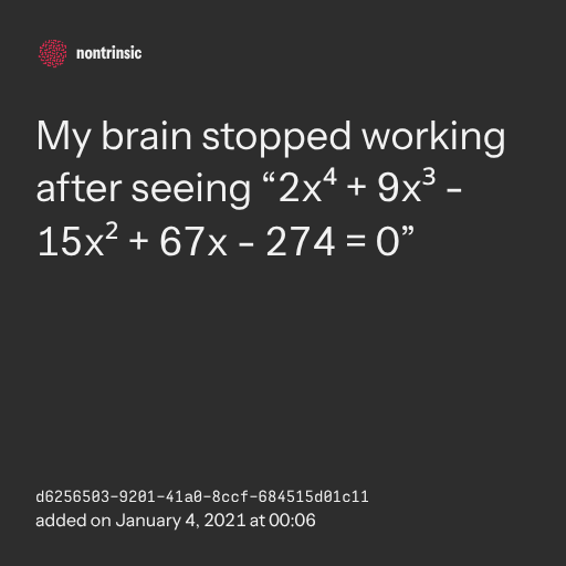 поделитьсяMy brain stopped working after seeing “2x⁴ + 9x³ - 15x² + 67x - 274 = 0”
