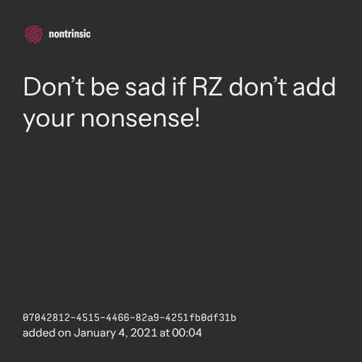 поделитьсяDon’t be sad if RZ don’t add your nonsense!