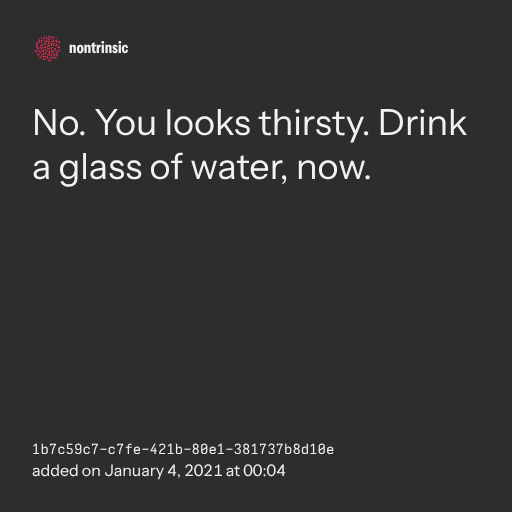 поделитьсяNo. You looks thirsty. Drink a glass of water, now.