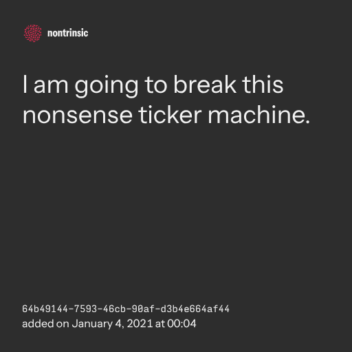поделитьсяI am going to break this nonsense ticker machine.