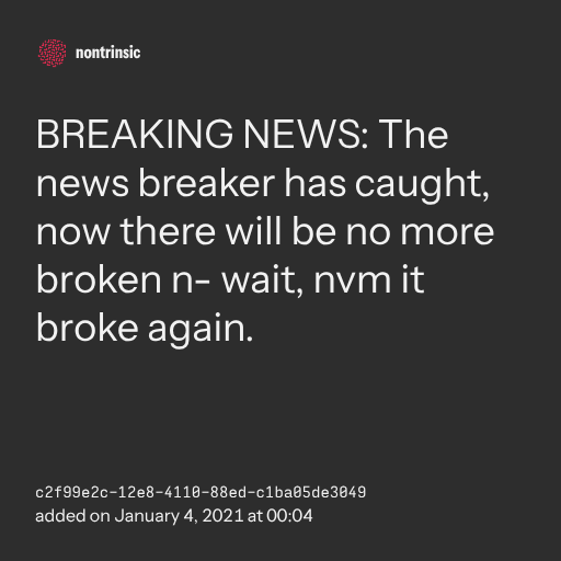 поделитьсяBREAKING NEWS: The news breaker has caught, now there will be no more broken n- wait, nvm it broke again.