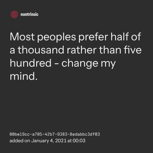 поделитьсяMost peoples prefer half of a thousand rather than five hundred - change my mind.