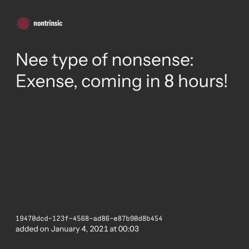 поделитьсяNee type of nonsense: Exense, coming in 8 hours!