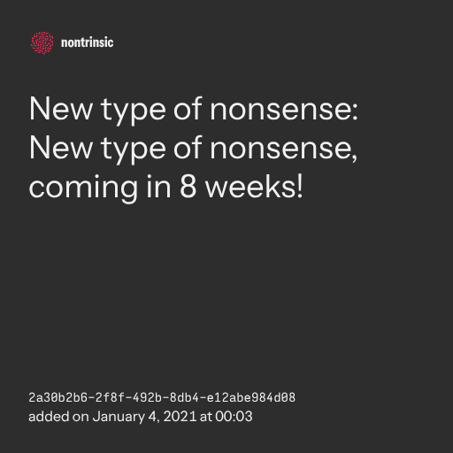 поделитьсяNew type of nonsense: New type of nonsense, coming in 8 weeks!