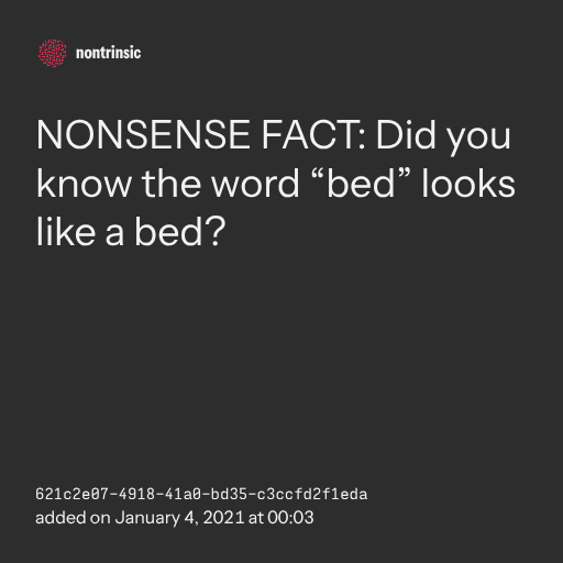 поделитьсяNONSENSE FACT: Did you know the word “bed” looks like a bed?