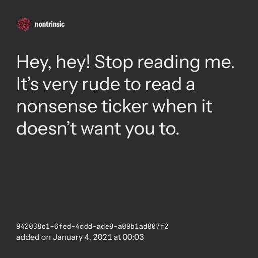 поделитьсяHey, hey! Stop reading me. It’s very rude to read a nonsense ticker when it doesn’t want you to.