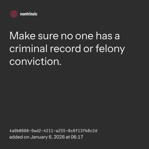 поделитьсяMake sure no one has a criminal record or felony conviction.