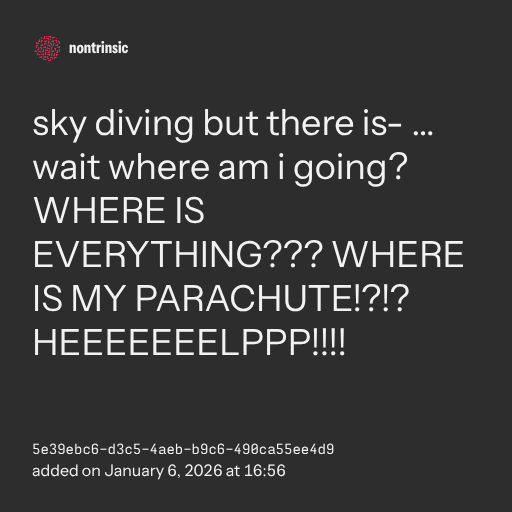 поделитьсяsky diving but there is- … wait where am i going? WHERE IS EVERYTHING??? WHERE IS MY PARACHUTE!?!? HEEEEEEELPPP!!!!