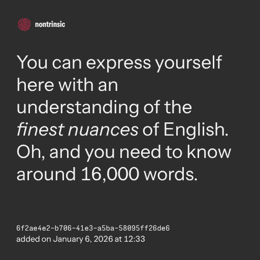 поделитьсяYou can express yourself here with an understanding of the finest nuances of English. Oh, and you need to know around 16,000 words.