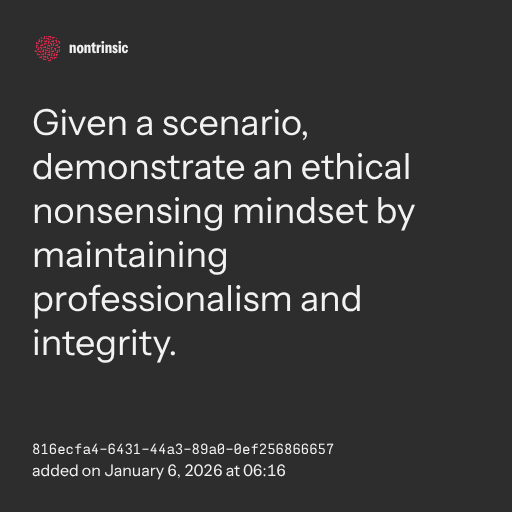 поделитьсяGiven a scenario, demonstrate an ethical nonsensing mindset by maintaining professionalism and integrity.