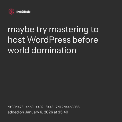 поделитьсяmaybe try mastering to host WordPress before world domination