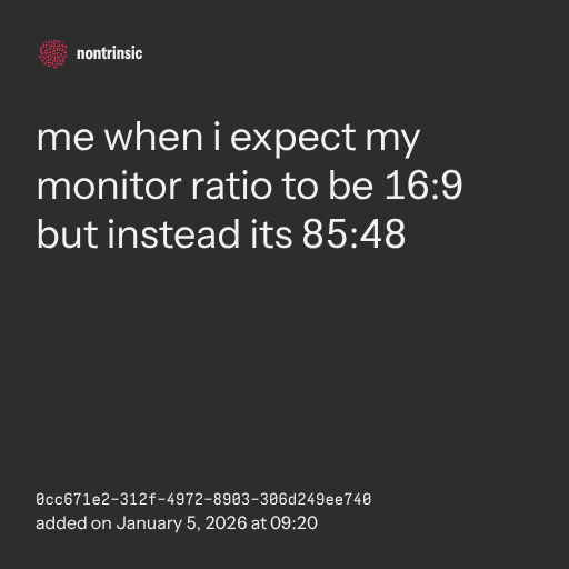поделитьсяme when i expect my monitor ratio to be 16:9 but instead its 85:48