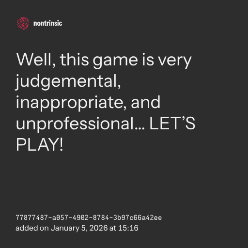 поделитьсяWell, this game is very judgemental, inappropriate, and unprofessional… LET’S PLAY!