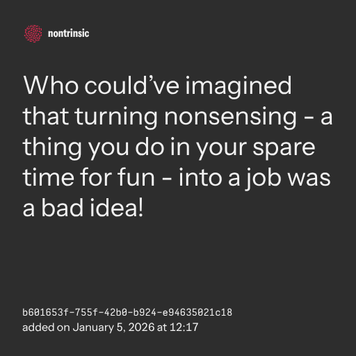 поделитьсяWho could’ve imagined that turning nonsensing - a thing you do in your spare time for fun - into a job was a bad idea!